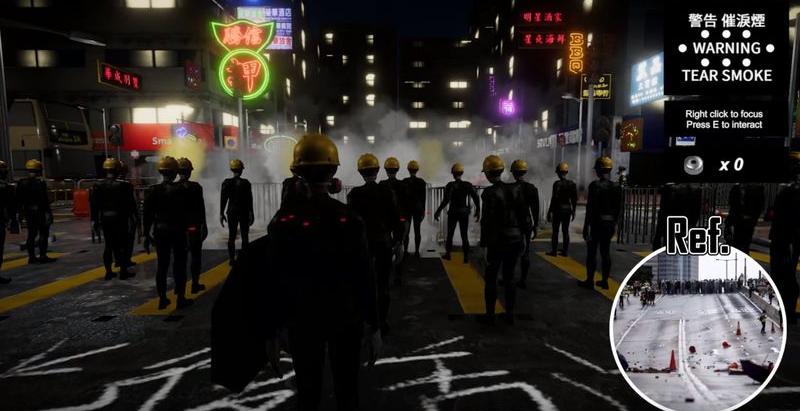 Brinnande bilar, maskerade demonstranter och fientligt inställda poliser. I ett spel som släpps inför helgens spelmässa Blizzcon i Hongkong simuleras frontlinjen för protesterna.