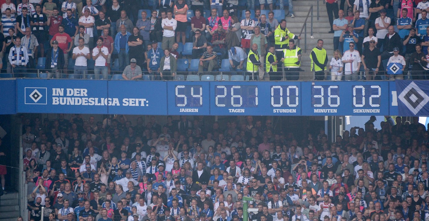 54 år och 261 dagar. Så länge tickade klockan på Volksparkstadion som räknade hur länge Hamburger SV varit uppe i Tysklands högsta serie. I dag åkte storlaget från norra Tyskland ur Bundesliga för första gången sedan ligan startade 1963.