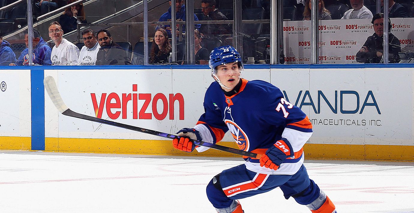 Det blev succé i NHL–debuten när unge Victor Eklund gled in på isen i New York Islanders tröja i natt.
