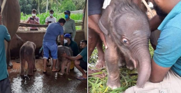 Elefant har fått tvillingar – unik födsel på Sri Lanka