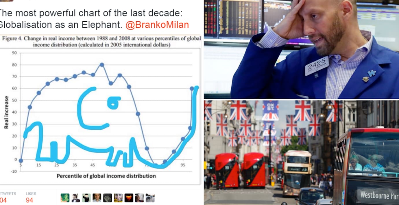 En graf som påminner om en elefant har börjat cirkulera på Wall Street, där strateger och analytiker försöker hitta förklaringar det brittiska folkets beslut att lämna EU och Donald Trumps stöd i USA, skriver Bloomberg.
