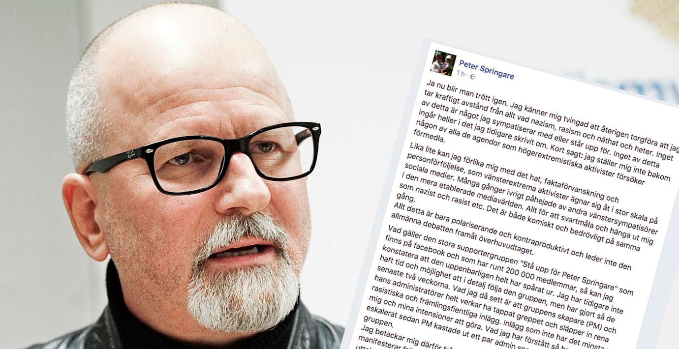 Facebookgruppen ”Stå upp för Peter Springare” hade 200 000 medlemmar. Men efter att Peter Springare i dag tagit avstånd från rasismen som frodas i gruppen är den på väg att implodera, skriver journalisten Emanuel Karlsten i ett blogginlägg. Två timmar efter Springares avståndstagande hade 5 000 personer lämnat och gruppen hunnit byta namn flera gånger.