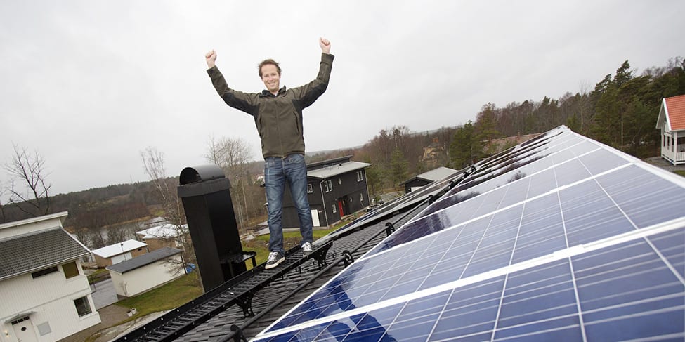 Huset i Bro utanför Stockholm byggdes 2011, och efter diskussion med husleverantören installerade Staffan Johansson en bergvärmepump kombinerad med ett FTX-aggregat som återvinner värmen i ventilationsluften. Huset på 193 kvadratmeter förbrukar 10 000 kilowattimmar, men med solfångare på taket och smarta lösningar blir nettoförbrukningen endast 3 000 kilowattimmar.