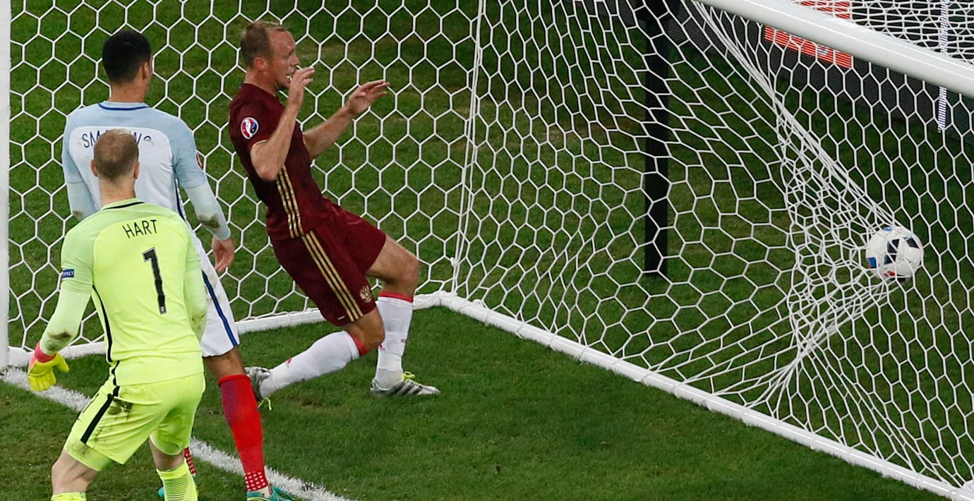 1–1 | Englands Eric Dier såg ut att bli matchhjälte mot Ryssland, tack vare ett vackert frisparksmål i den 73:e minuten. Men på tilläggstid förstörde Denis Glusjakov den brittiska festen när han kvitterade.