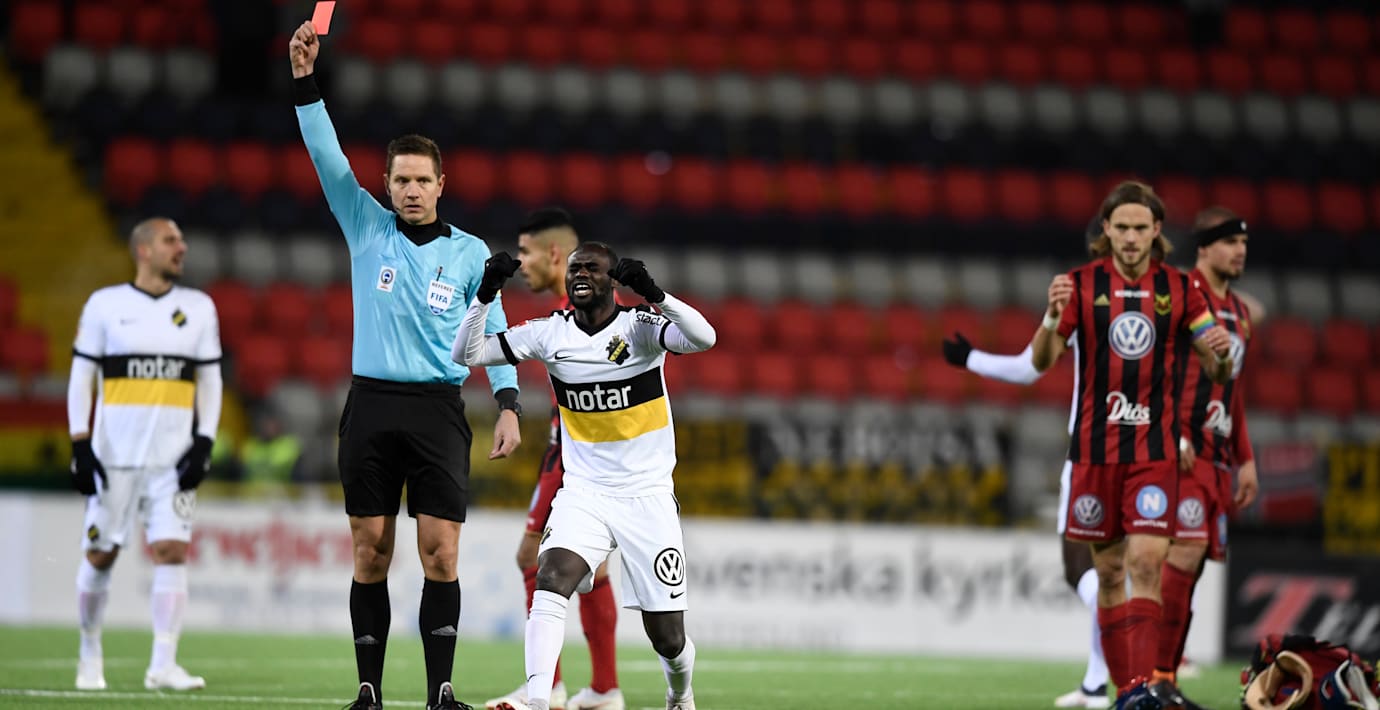 AIK:s Enoch Kofi Adu missar den sista omgången i allsvenskan, skriver Fotbollskanalen. Orsaken är det röda kort han fick i mötet med Östersund.