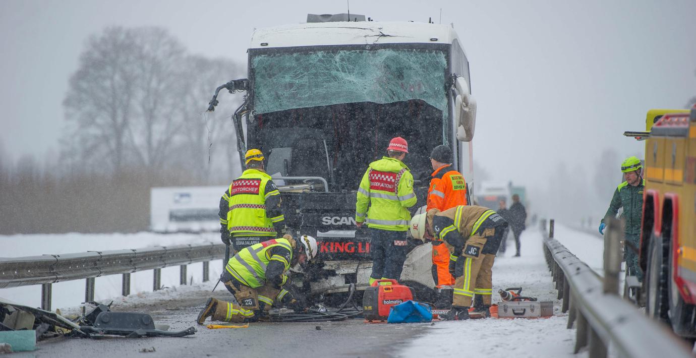 Ett 40-tal personer har förts till sjukhus eller vårdcentral, varav minst 30 barn, när tre bussar – fullastade med högstadie- och gymnasieelever – krockade på riksväg 70 i Hedemora, uppger Dala-Demokraten.