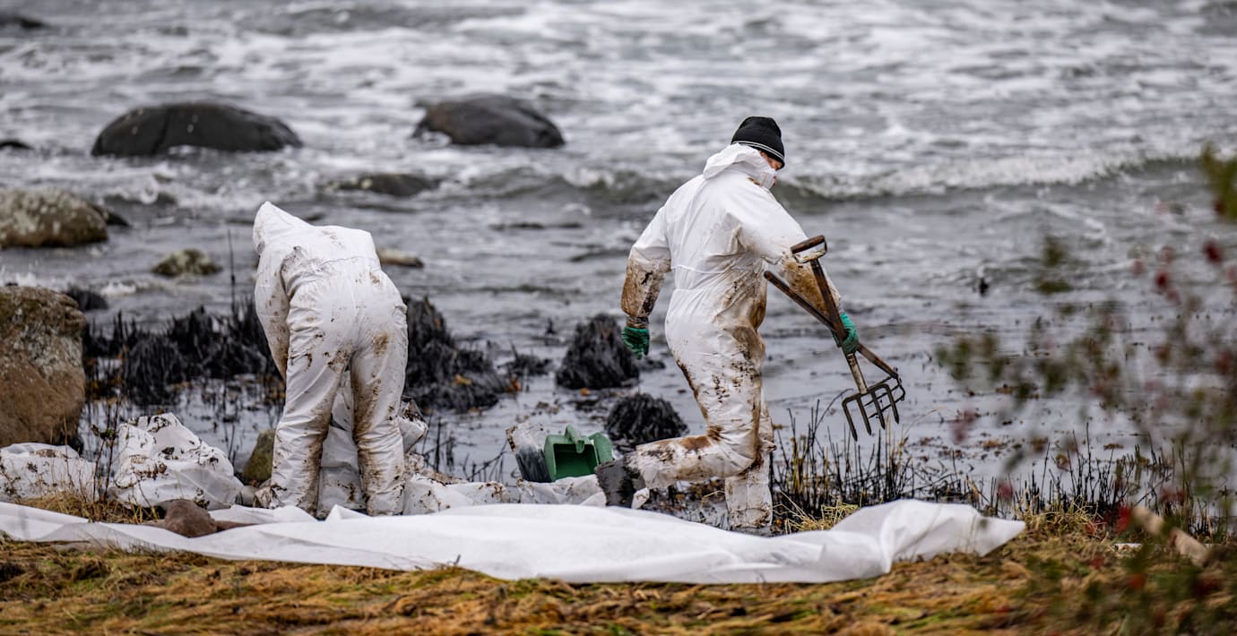Runt 60 000 liter olja läckte ut i havet i samband med grundstötningen. Fortfarande är stenarna längs stränderna svartfläckiga.