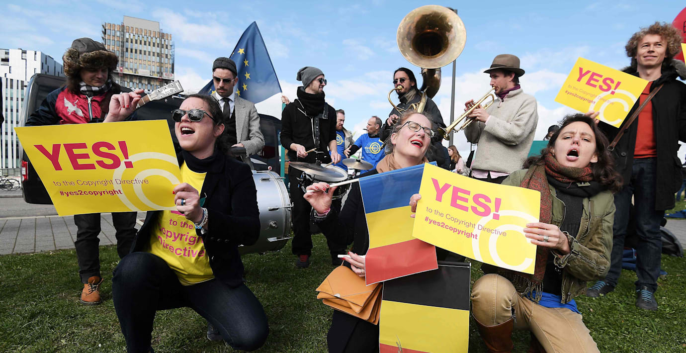 eller (enligt artikel 13) använda uppladdningsfilter som automatiskt upptäcker och blockerar upphovsrättsligt skyddat material.Om webbplattformen inte betalar licensavgift till rättighetsinnehavaren får endast mycket korta citat visas i anslutning till en webblänk till en nyhetssajt, så att användaren måste gå in på nyhetssajten för att kunna se bilder, filmer och längre texter, och att nyhetssajten därmed kan få egna reklam- eller abonnemangsintäkter. Kravet på uppladdningsfilter innebär att ansvaret för att söka efter upphovsrättsintrång bland användargenererat innehåll förs över från rättighetsinnehavaren till de stora webbplattformarna. Små och nystartade som privata och ickekommersiella webbplattformar, exempelvis Wikipedia, undantas från kraven i artikel 13, men inte i artikel 11.Kritiker av förslaget beskriver licensavgifterna i artikel 11 som en "länkskatt", som inte webbplattformarna alltid kommer att vara beredda att betala. De menar att den automatiserade blockeringen i artikel 13 kan bli inexakt och därmed fungera som censur som hindrar spridande av internetfenomen, även lagliga parodier på upphovsrättskyddat material. Filtren kan i praktiken upphäva undantaget för panoramafrihet genom att automatiskt blockera bilder där permanent placerad offentlig konst och upphovsrättsligt skyddad arkitektur finns i bakgrunden. Filtren kommer att stoppa längre citat ur media och kan därmed hindra fri debatt. Direktivet förespråkas av jurister som företräder europeisk mediebransch och av Europakommissionen, som avvisar dessa argument som desinformation. Förespråkarna menar att ett parodiundantag är reglerat i EU:s tidigare copyrightdirektiv och kan upprätthållas genom att användare anonymt ska kunna begära att webbplattformarna manuellt omprövar felaktig automatblockering, och genom att blockeringsbeslut ska kunna överklagas till annan instans. Förespråkarna menar att webbplattformarna bör kunna komma överens med upphovsrättsinnehavarnas företrädare så att blockering i många fall kan undvikas.