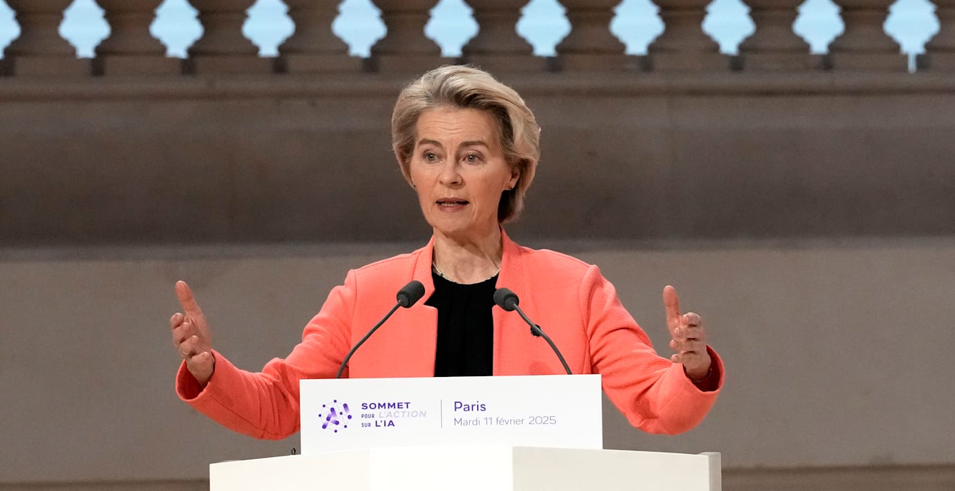 EU ska satsa omkring 200 miljarder euro på AI, motsvarande omkring 2 250 miljarder kronor. Det meddelar EU-kommissionens ordförande Ursula von der Leyen vid AI-toppmötet i Paris, skriver Barron’s.