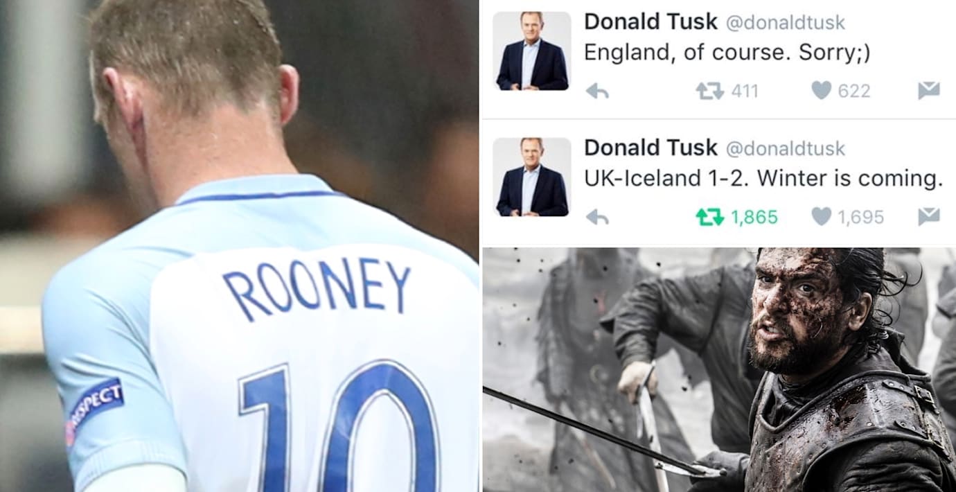 ”UK-Iceland 1-2. Winter is coming”, twittrade Tusk, som strax därefter rättade sig själv: ”England, of course. Sorry ;).”