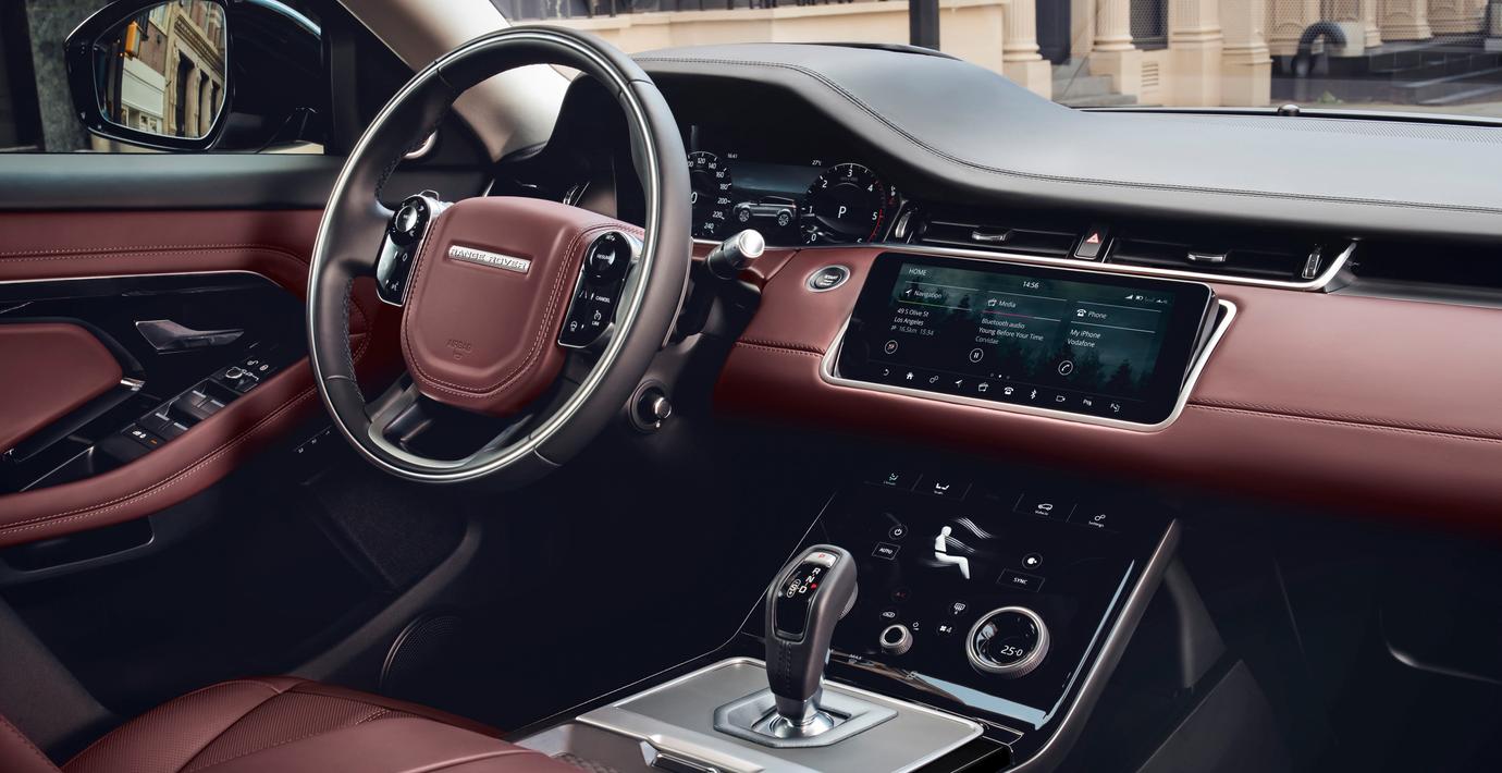 Den nya designen påminner mycket om den större modellen Range Rover Velar. Detta är bara positivt då Velar vann ”World Car of the Year Design Award” på den prestigefulla bilutställningen New York International Auto förra året. Invändigt utstrålar nya Evoque enhetlighet och lyx. Interiören är minimalistiskt inredd med enkla linjer. För den som helst undviker skinnklädsel finns flera miljövänliga alternativ att välja mellan. Återvunnen plast eller eukalyptus-textiler framställd av naturliga fibrer är några av dem. Med den dubbla pekskärmen Touch Pro Duo har du enkel tillgång till alla de tekniska funktioner som du behöver.