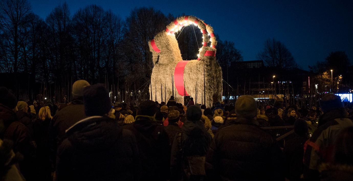 Det här julfirandet fick Gävlebocken stå kvar oskadd. Att den inte brann ned beror på en rad olika faktorer, säger bockens talesperson Maria Wallberg till TT.