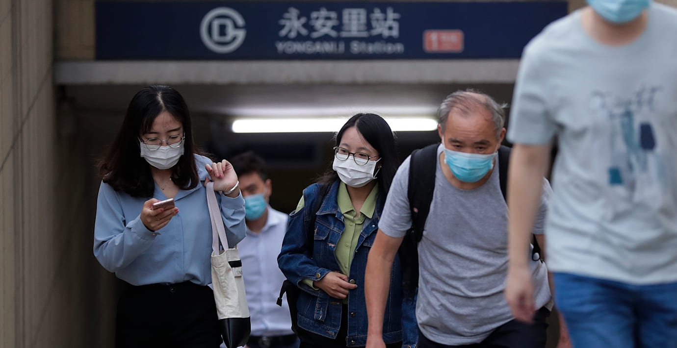 Personer med munskydd i Kina. (Andy Wong / TT NYHETSBYRÅN)