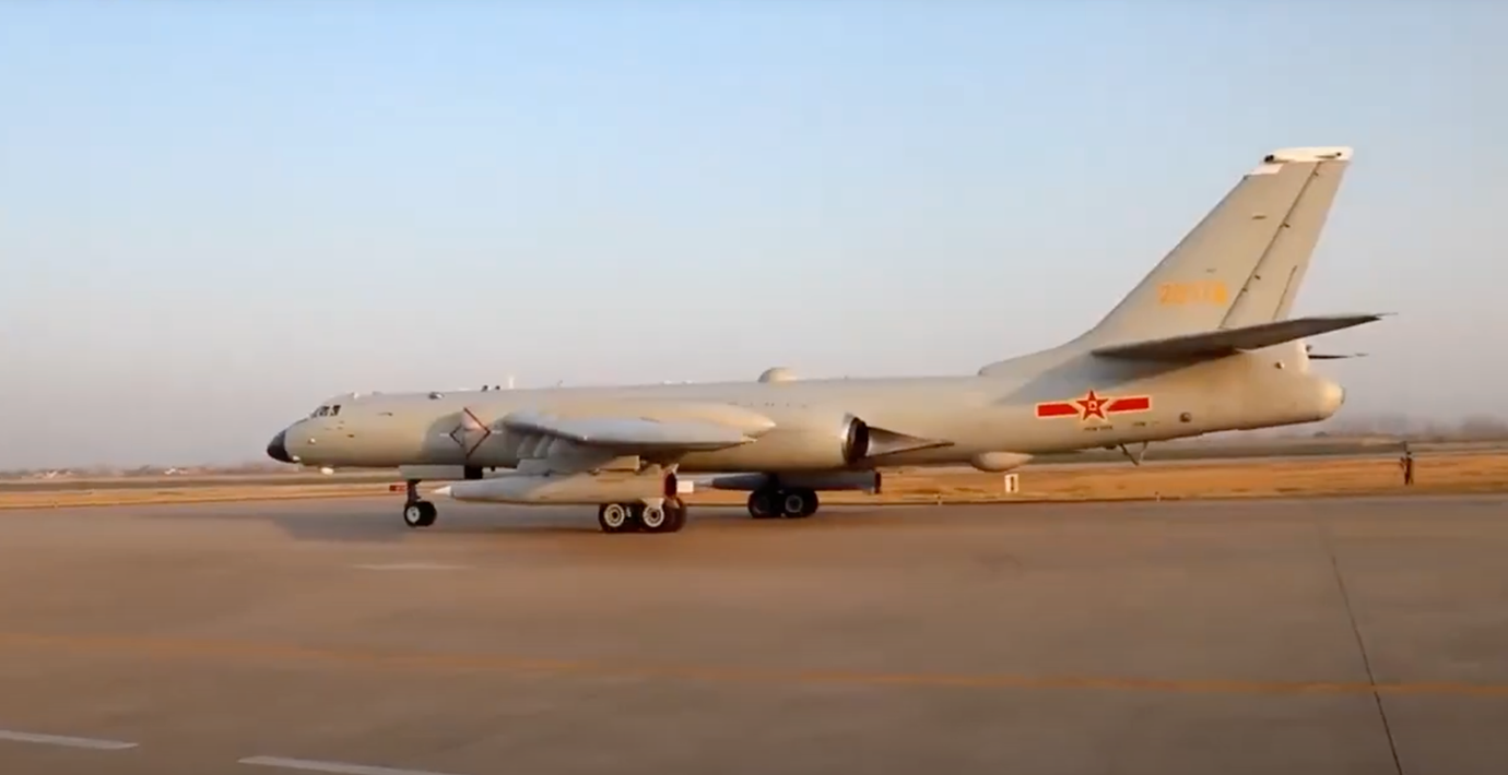 I ett videoklipp som släppts av den kinesiska militären ses ett flygplan som tycks bära på robotar av typen YJ-21 lyfta från en landningsbana.