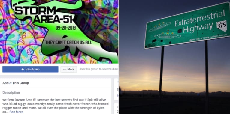 Över en halv miljon människor har anslutit sig till en Facebookgrupp som säger sig vilja storma en militärbas där man menar att USA:s styre gömmer bevis på att utomjordingar existerar.