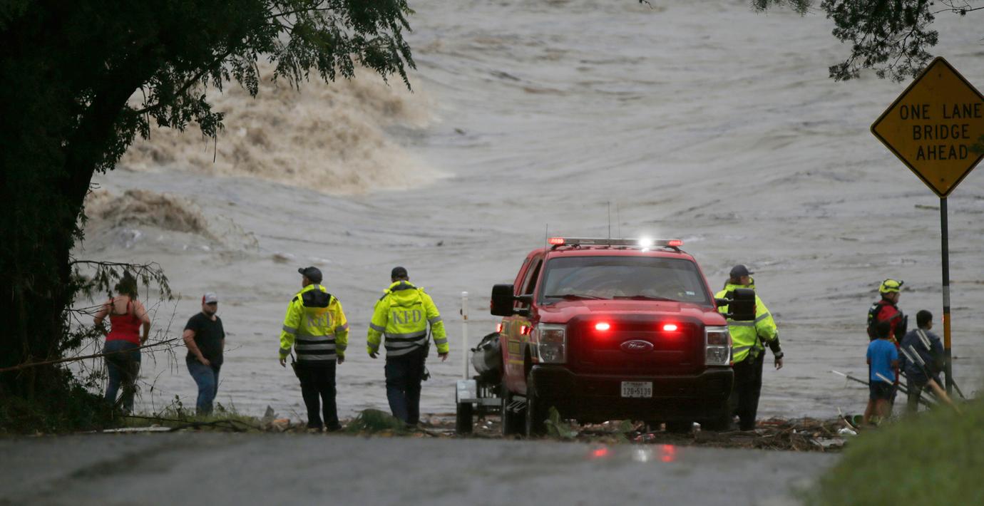Räddningstjänsten söker vid floden Guadalupe som svämmade över. (Michel Fortier / AP)