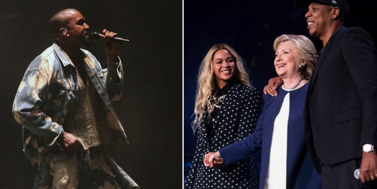 Han angrep också superstjärnan Beyoncé, som stöttat Clinton, för att utnyttja politiken till att vinna musikpriser. Sedan avslutade Kanye West konserten abrupt. Fansen buade och många kräver ersättning för den avbrutna showen, skriver AP.