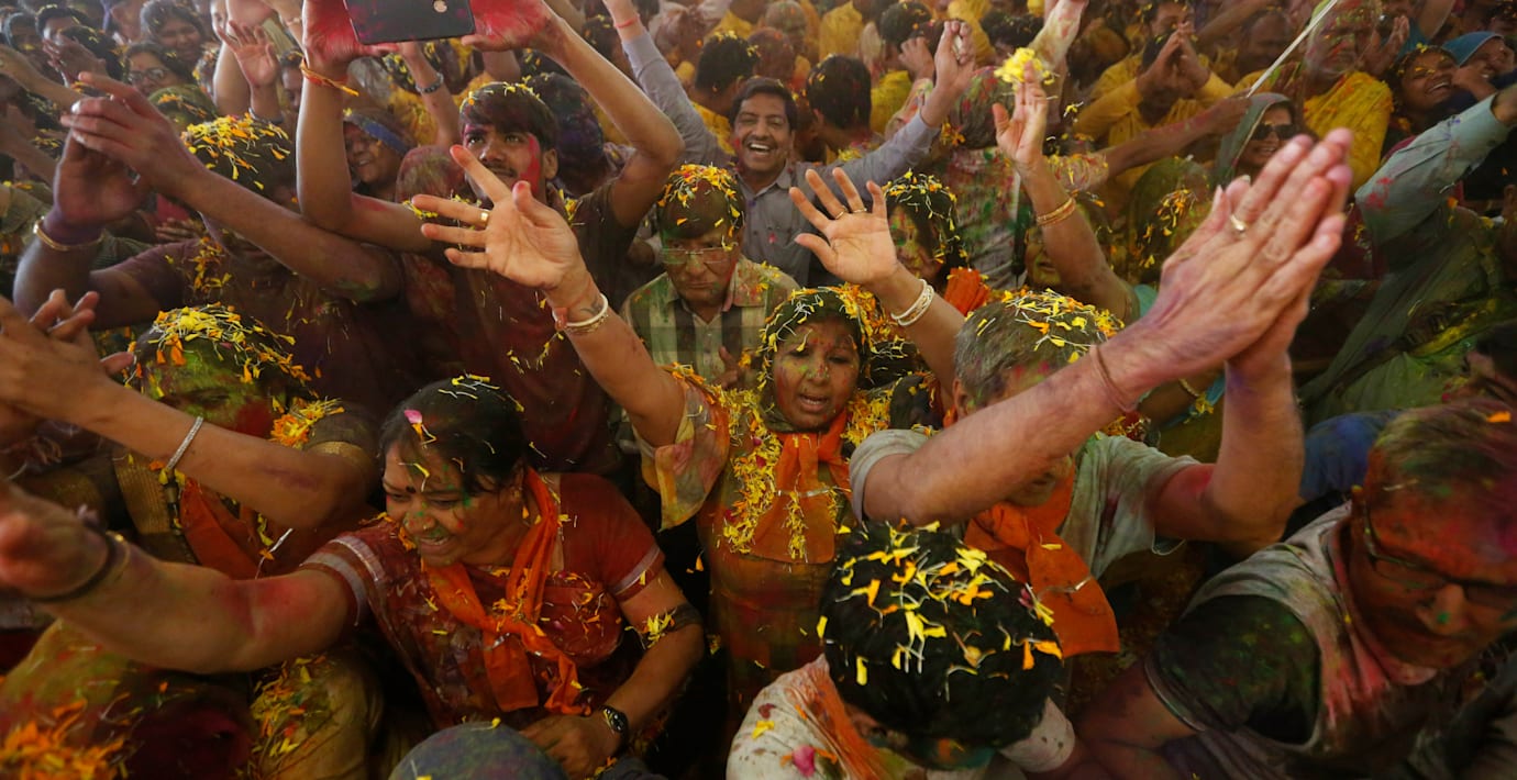 Färgexplosion och dans när Indien välkomnar våren