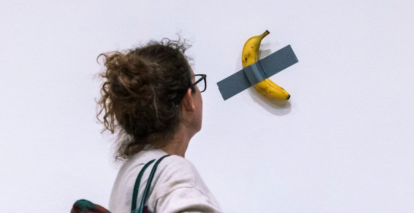 En banan i matbutiken kostar några kronor. Men en banan som tejpats upp med silvertejp på en vit vägg är desto dyrare och kan i veckan klubbas för miljoner, skriver flera medier.