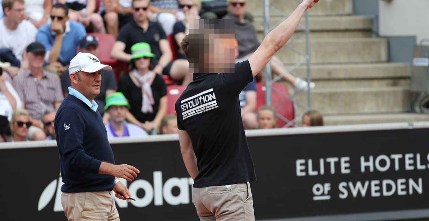 Spanjoren David Ferrers semifinal mot Fernando Verdasco i Swedish Open i Båstad avbröts när en man sprang in och skrek nazistiska slagord. Det dröjde hela 30 sekunder innan en vakt kom dit och förde bort mannen.