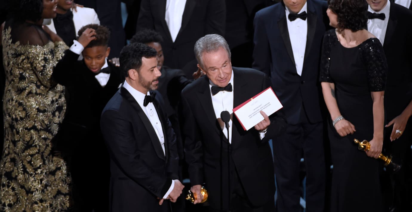 Fel vinnare prisades och fick Oscarsstatyetten för bästa film – galans mest prestigefyllda pris. Efter att ”La la land”-teamet hållit sitt tal på scenen uppdagades misstaget, vinnaren var ”Moonlight”.
