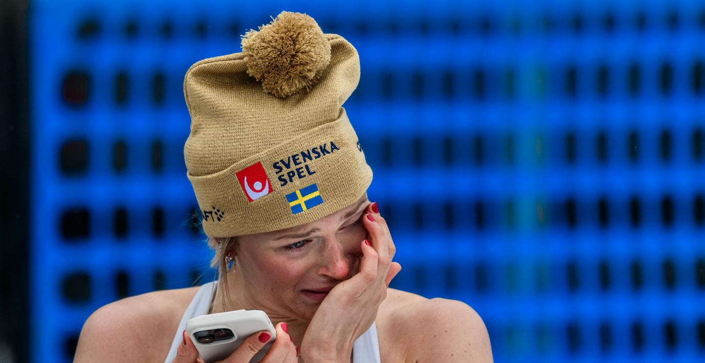 Direkt när hon kom över mållinjen ringde hon ett samtal. När Viaplays reporter frågar vem det gick till kommer tårarna. Det var Linn Svahn hon ringde.