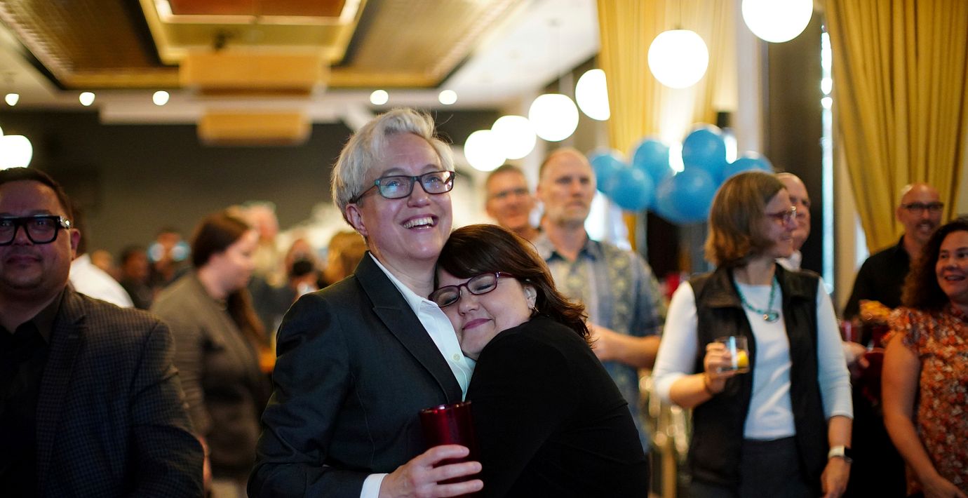 Tina Kotek med sin fru, Aimee Kotek Wilson. (Beth Nakamura / AP)