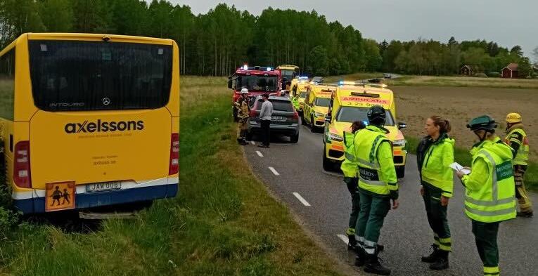 Skolbuss körde av vägen – flera skadade