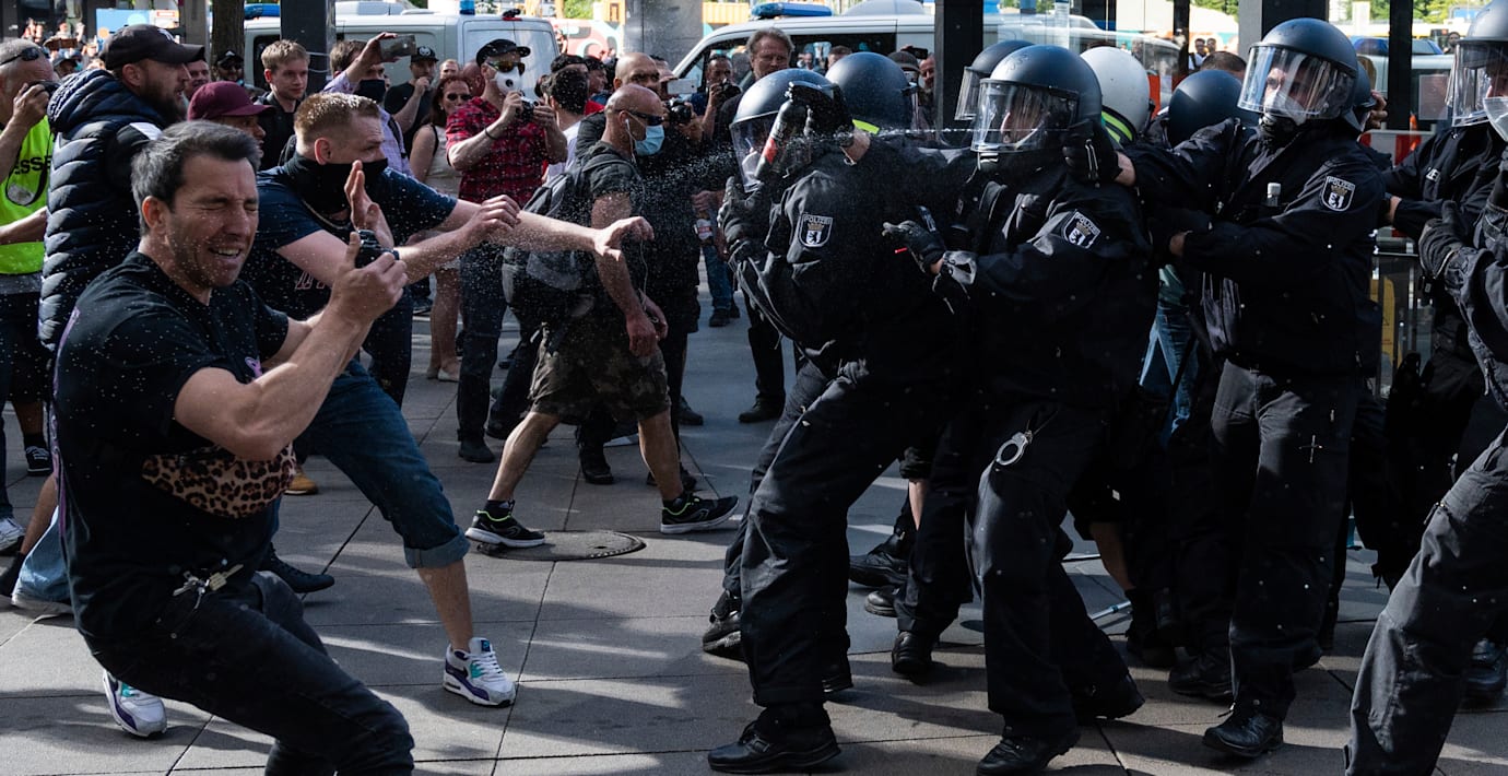På Alexanderplatz i Berlin uppstod en spontan demonstration med omkring 1 200 deltagare i går kväll, skriver Focus. Många skanderade ord som "frihet", "motstånd", "förrädare" och "vi är alla människor".