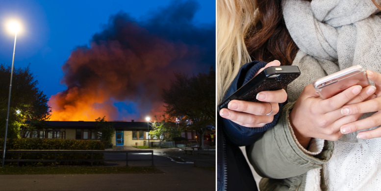 ”Elden blev för stor och vi försöker släcka men det går ej”, skriver flickan.