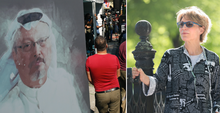 En bild på Jamal Khashoggi och FN-experten Agnes Callamard. (TT)