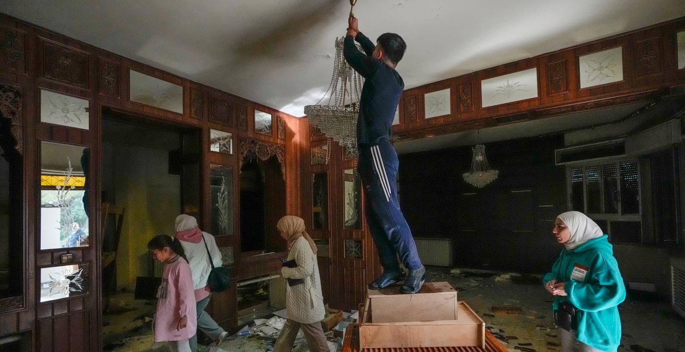 Bilder visar hur Assads privata residens plundras