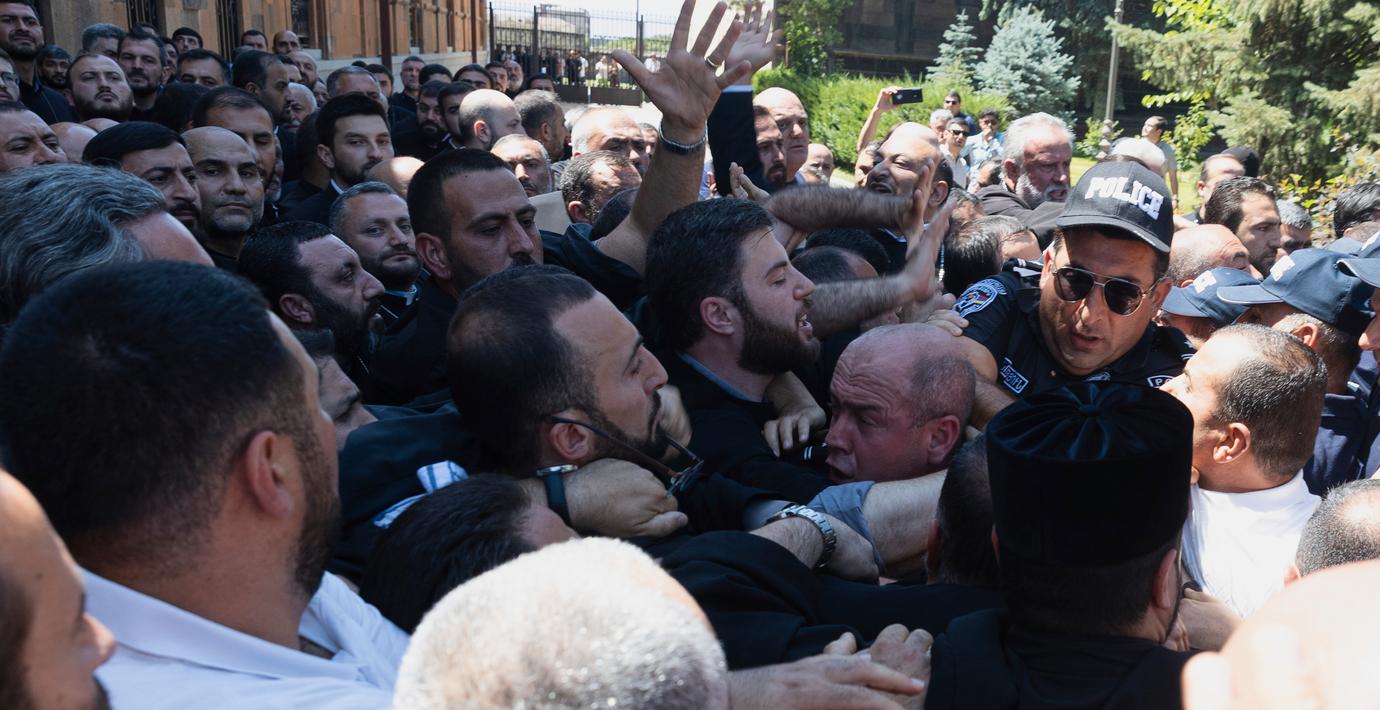 Polis stormade den armenska apostoliska kyrkans högkvarter utanför huvudstaden Jerevan på fredagen för att gripa den oppositionelle ärkebiskopen Mikael Ajapahyan, rapporterar AP. De stoppades av hans anhängare och fick gå med oförrättat ärende, enligt nyhetsbyrån.