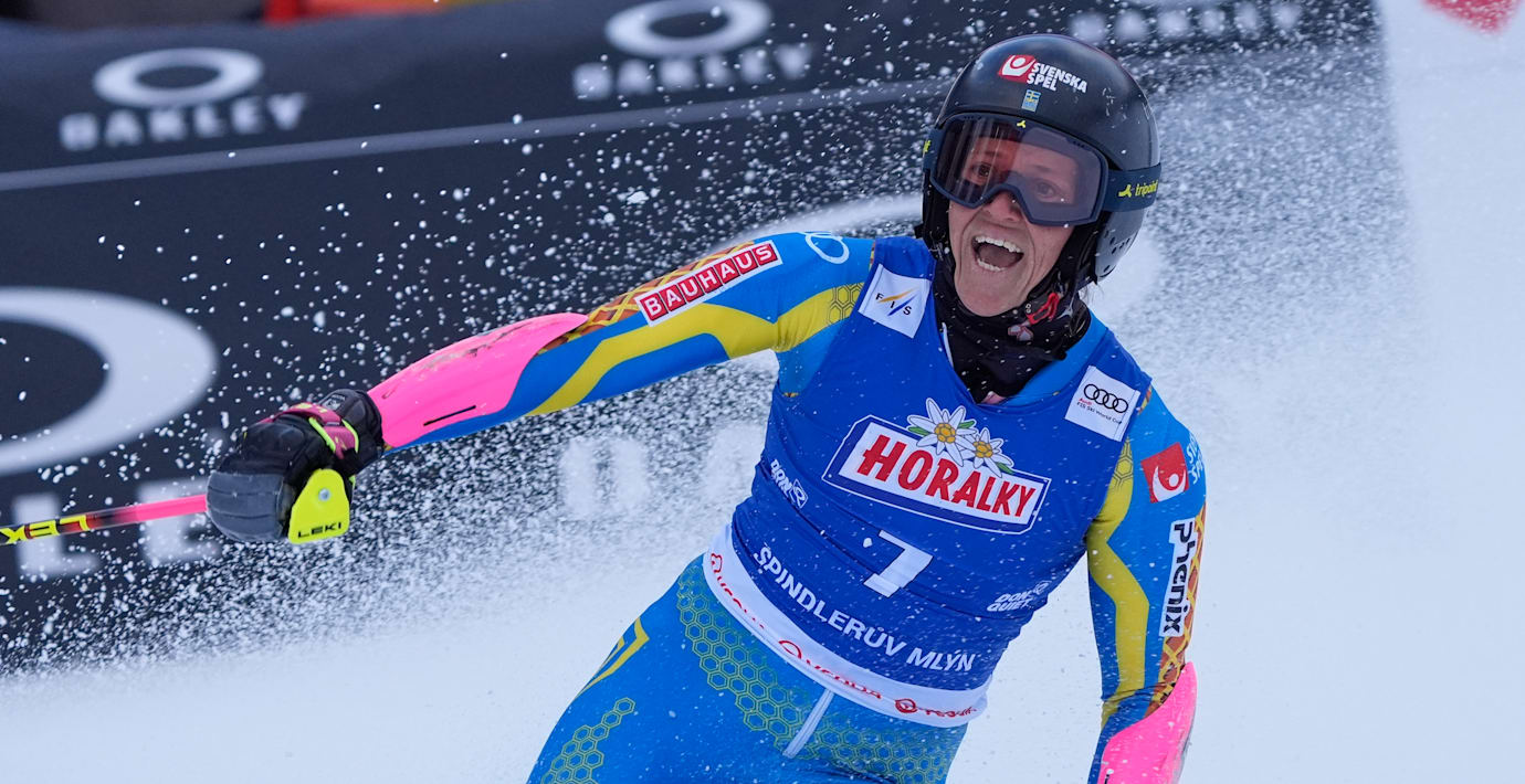 Alpinstjärnan Sara Hector vinner dagens storslalom i tjeckiska Spindleruv Mlyn efter två starka lopp. Det var 33-åringens första världscupseger för säsongen, med två veckor till OS.