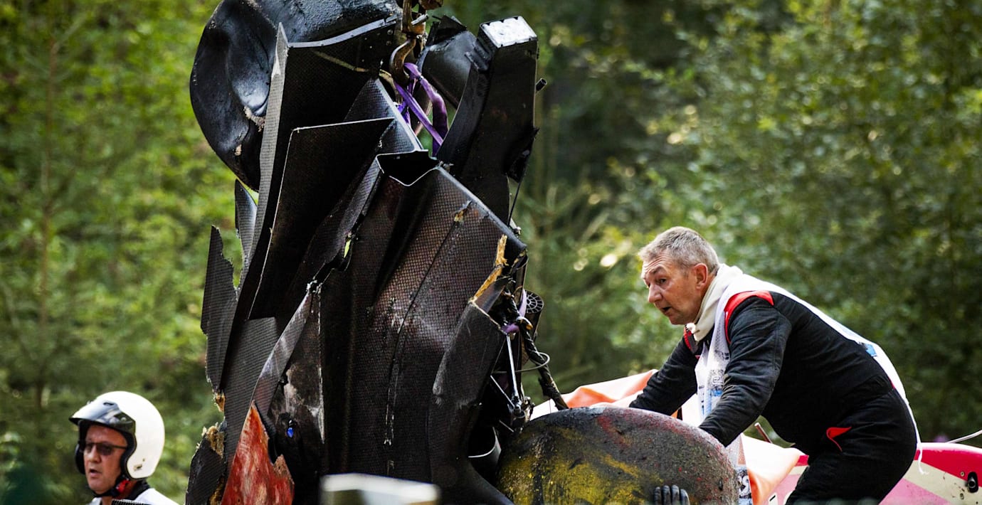 Huberts och amerikanen Juan Manuel Correas bil slog runt flera gånger och slungades in i däckstapeln. Tävlingen avbröts efter kraschen.