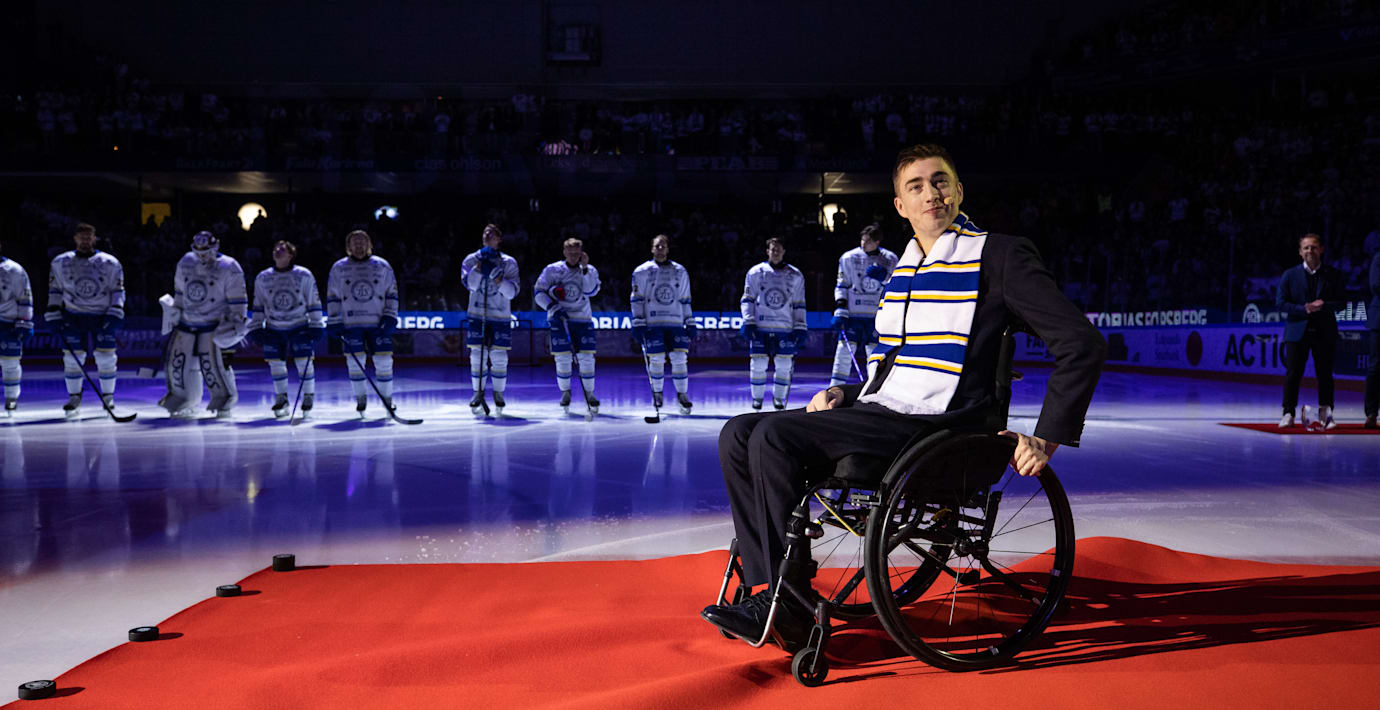 Den tidigare Leksandsspelaren Tobias Forsberg hyllades stort inför lördagskvällens match hemma mot Luleå. 34-åringens karriär fick ett hastigt slut när han under en match för snart fyra år sedan bröt nacken och förlamades från bröstet.