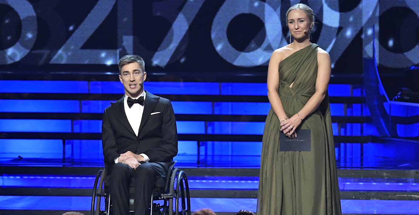 Hockeyspelaren Tobias Forsberg fick en allvarlig nackskada under en match för drygt ett år sedan och förlamades från bröstet och ner. Till stående ovationer delade han och flickvännen Filippa Norr Richloow ut pris på Idrottsgalan.