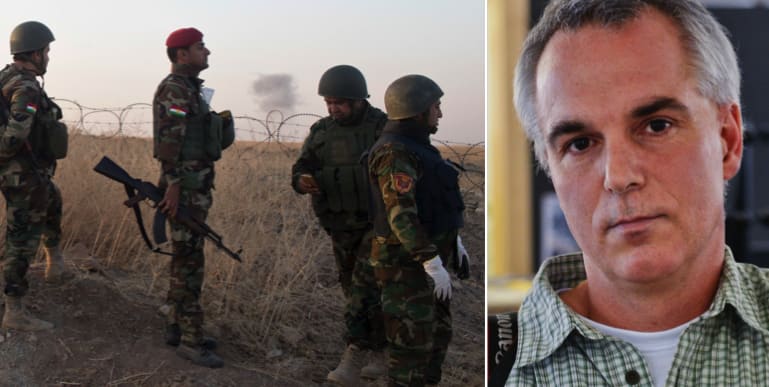 Kurdiska peshmergasoldater besvarade elden och Hansen plockades upp i en bil och kördes till sjukhus.