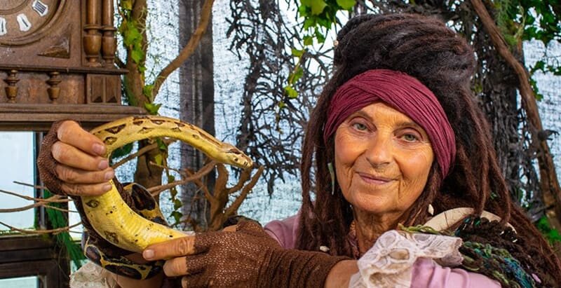 Iförd bandana och korsett och med dreadlocks i håret kommer Reuter att ställa kluriga gåtor till tävlingsdeltagarna i underhållningsprogrammet.