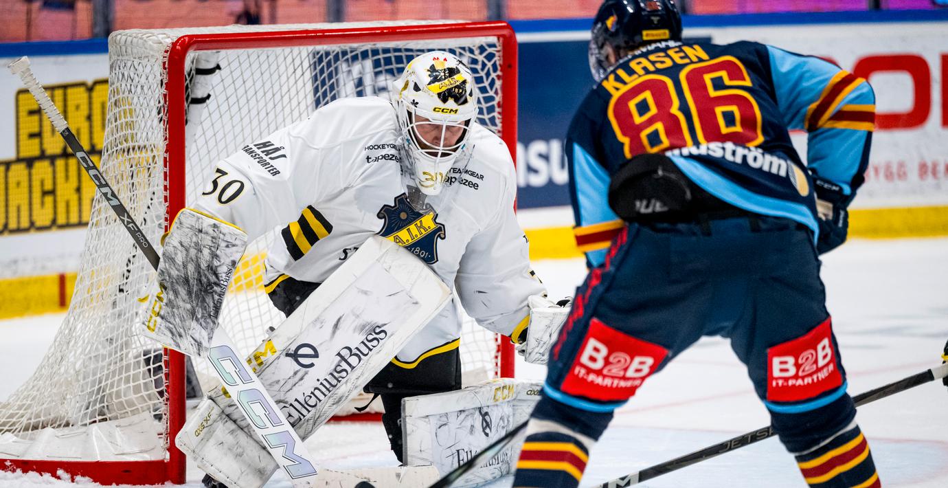 AIK-målvakten Victor Brattström har storspelat mellan stolparna i slutspelet men stod för en rejäl tavla när han skulle hämta pucken bakom mål vid ställningen 2–1 till Djurgården. Brattström missade pucken och Djurgårdens Victor Eklund kunde enkelt lägga in pucken i öppet mål.