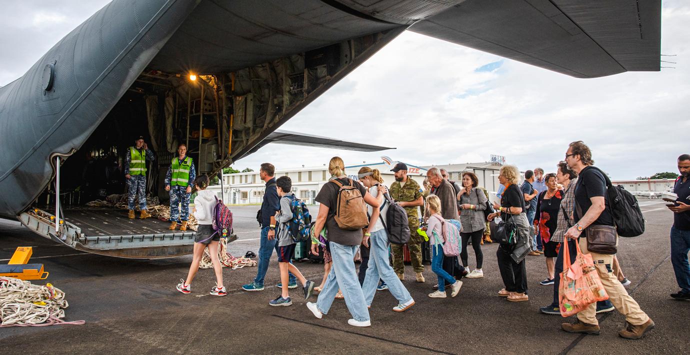 De första turisterna har under tisdagen evakuerats från våldshärjade ögruppen Nya Kaledonien i Stilla havet, skriver AFP. Både Australien och Nya Zeeland har skickat evakueringsplan.