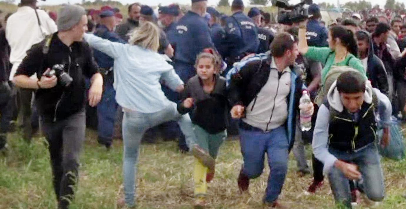 Händelsen fångades på film i september 2015 vid gränsen mellan Ungern och Serbien och fick stor uppmärksamhet.