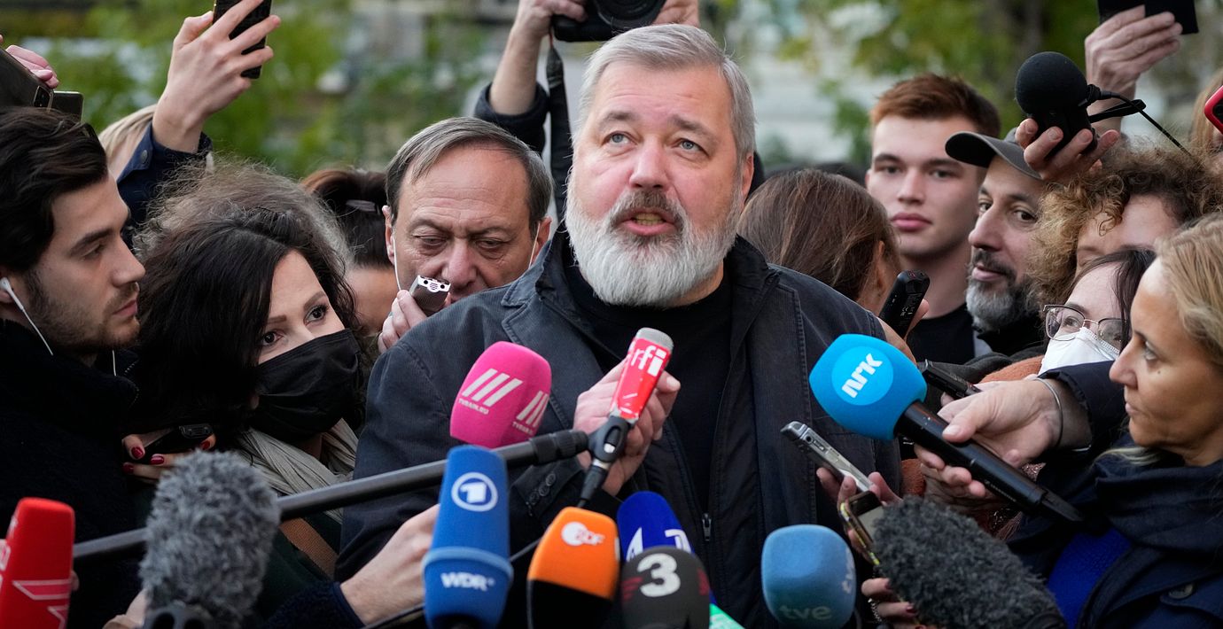 Muratov delar priset med den filippinska journalisten Maria Ressa.
