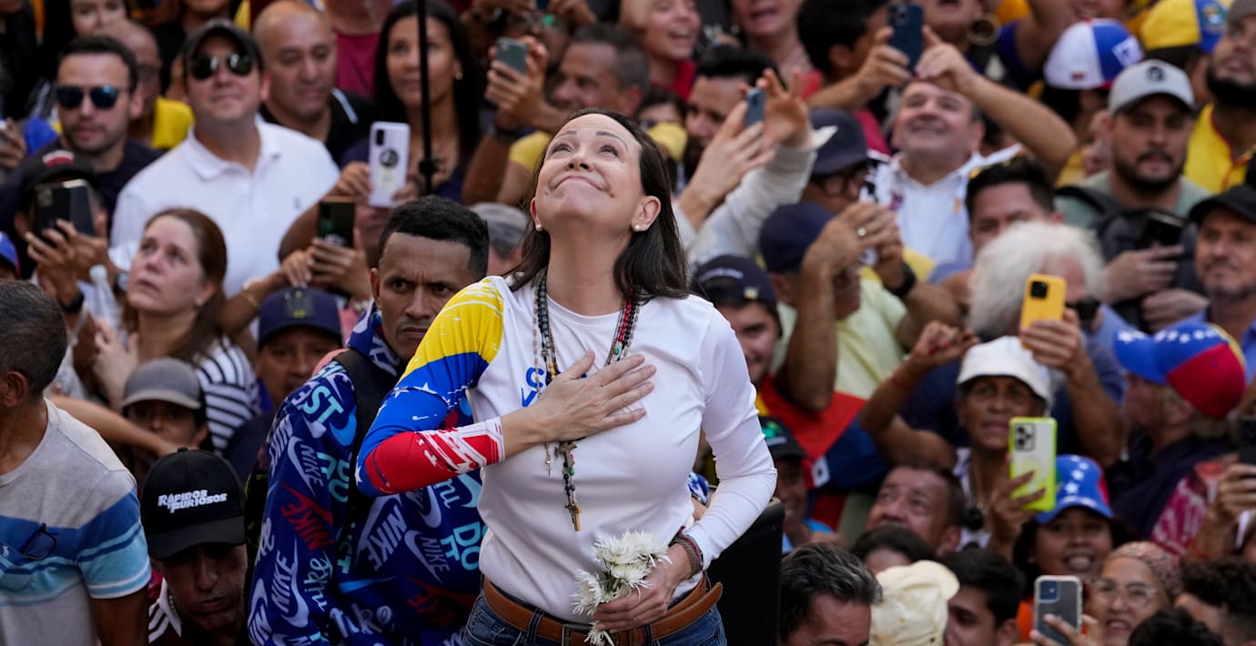 En presskonferens skulle hållas under tisdagen med oppositionspolitikern från Venezuela, men den ställdes in eftersom Nobelinstitutet inte visste var hon befann sig. Corina Machado är efterlyst i sitt hemland och belagd med reserestriktioner av Maduroregeringen.