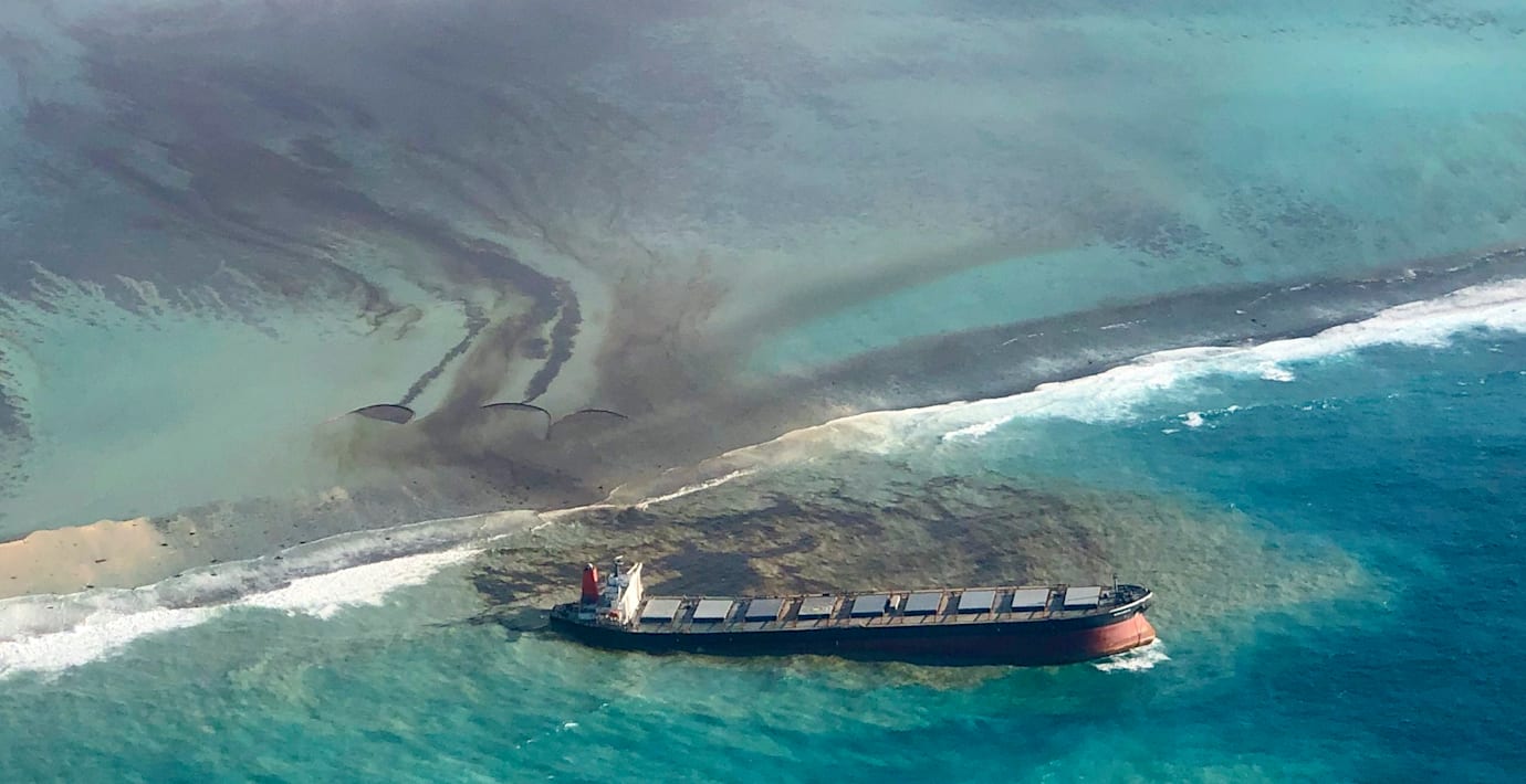 Frivilliga jobbar nu mot klockan i ett försök att begränsa oljeläckan från det fartyg som gått på grund utanför Mauritius, rapporterar BBC.