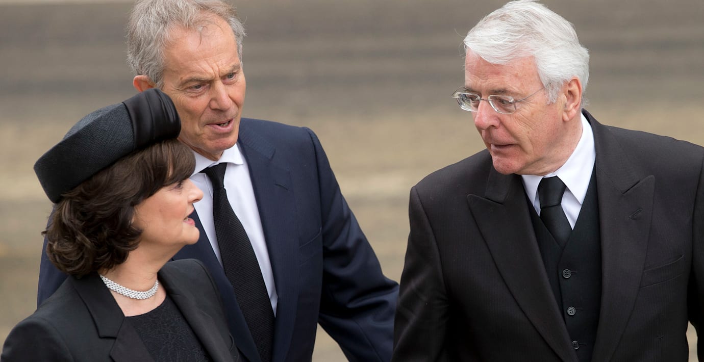 Sir John Major, KG, CH, PC (born 29 March 1943) is a British politician who served as the Prime Minister of the United Kingdom and Leader of the Conservative Party from 1990 to 1997. A cabinet minister from 1987, he served Margaret Thatcher in the Treasury and Foreign Office during her third ministry. Major was Member of Parliament (MP) for Huntingdon from 1979 to 2001. He has been the oldest living former Prime Minister since the death of his predecessor Thatcher in 2013.