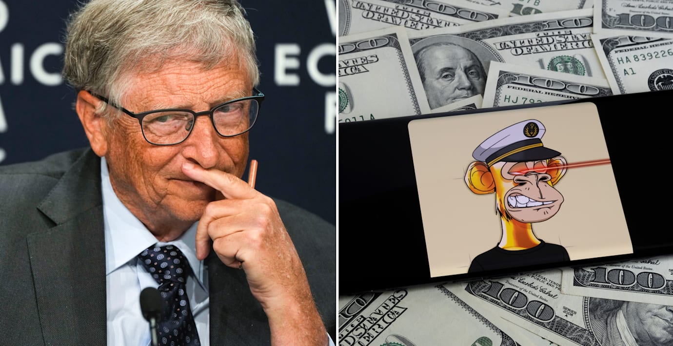 Under ett tal skämtade Gates sarkastiskt om att ”dyra digitala bilder av apor” kommer att förbättra världen avsevärt, syftande på NFT-samlingen ”Bored Ape Yacht Club”.