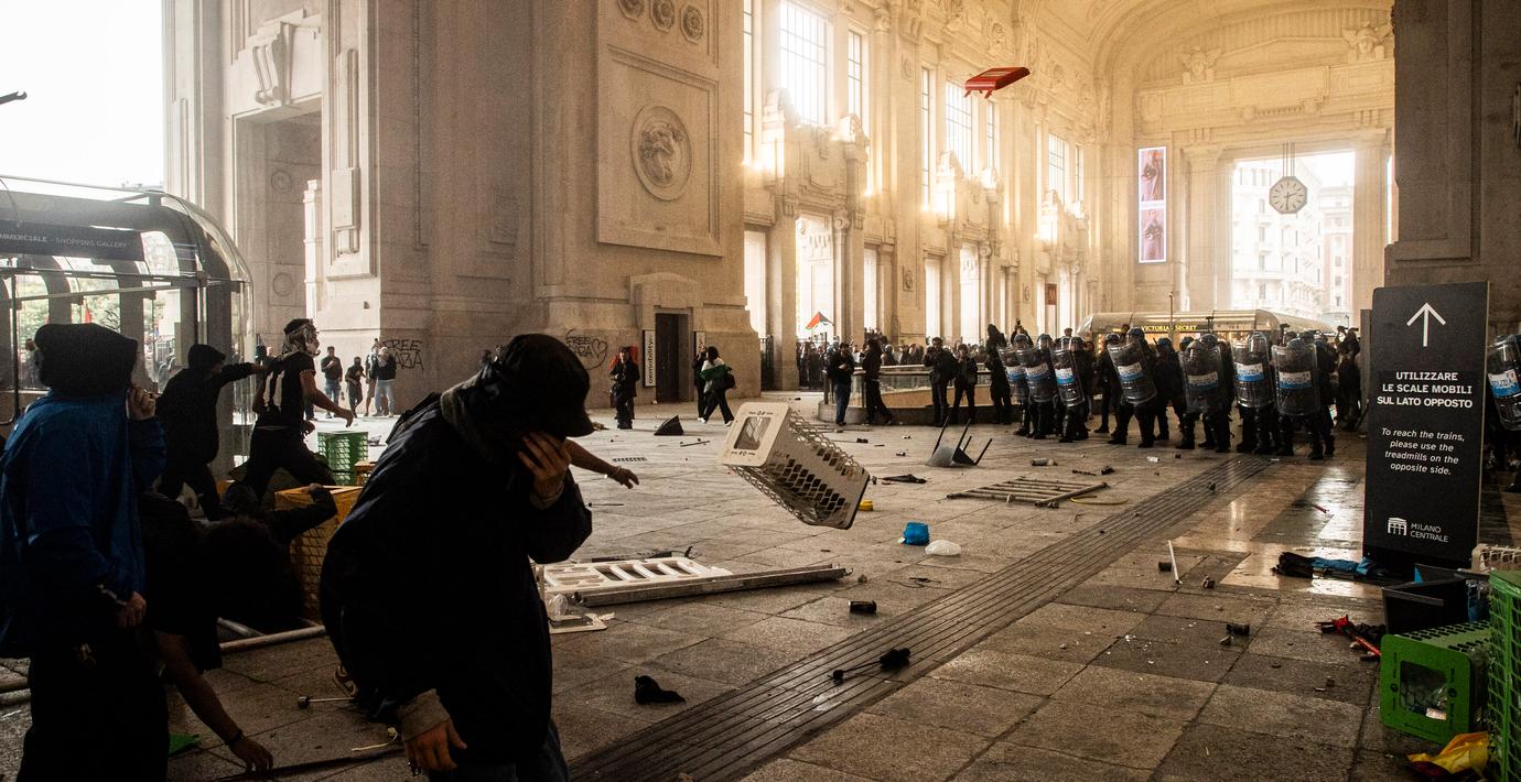 Protester mot Israels krigföring i Gaza har urartat på flera håll i Italien, rapporterar italienska medier. I bland annat Milano och Venedig har demonstranter drabbat samman med kravallpolis, skriver Reuters. I Bologna, Rom och flera andra städer är trafiken blockerad.