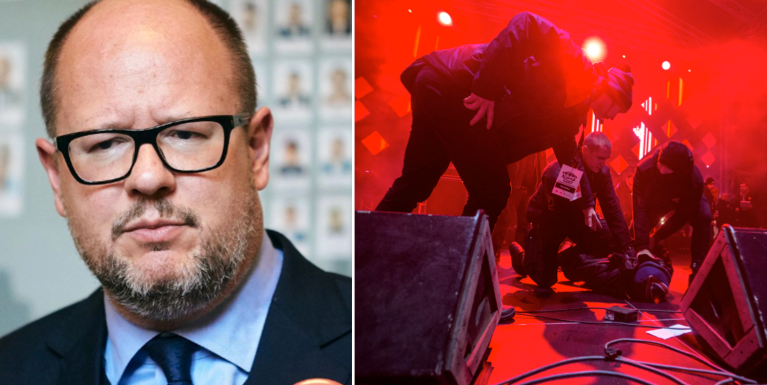 Tidigare i dag kom nyheten att han opererats i fem timmar och var i behov av mer blod. Han blev knivskadad i hjärtat och magen, uppgav läkaren Tomasz Stefaniak på måndagsmorgonen, skriver AP.