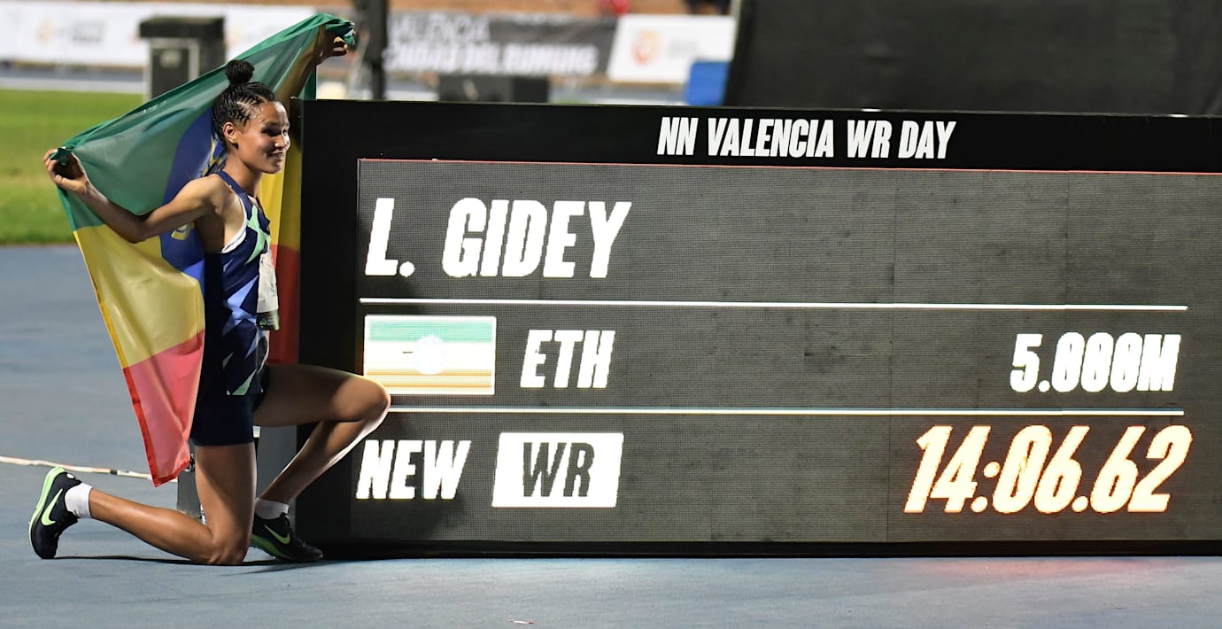 Det blev dubbla världsrekord på långdistansgalan World Record Day i Valencia. Först ut var Letesenbet Gidey från Etiopien som slog nytt världsrekord på 5 000 meter.